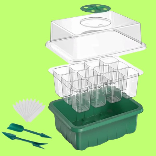 🌱 Posoda za vzgajanje sadik z razdelki – izdelana iz PETa, odpornega na razpoke, za dolgotrajno uporabo.